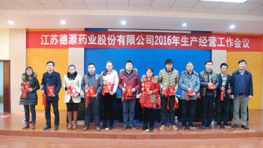 2月17日上午,江蘇德源藥業(yè)股份有限公司2016年生產(chǎn)經(jīng)營(yíng)工作會(huì)議在大浦原料藥分公司會(huì)議中心召開。會(huì)議總結(jié)了2015年生產(chǎn)經(jīng)營(yíng)工作,布置了2016年生產(chǎn)經(jīng)營(yíng)工作任務(wù),并對(duì)在2015年度中工作積極,表現(xiàn)突出的員工進(jìn)行了表彰。公司高層領(lǐng)導(dǎo)、銷售公司、獨(dú)立辦事處、各管理部門負(fù)責(zé)人以及受表彰人員參加會(huì)議。