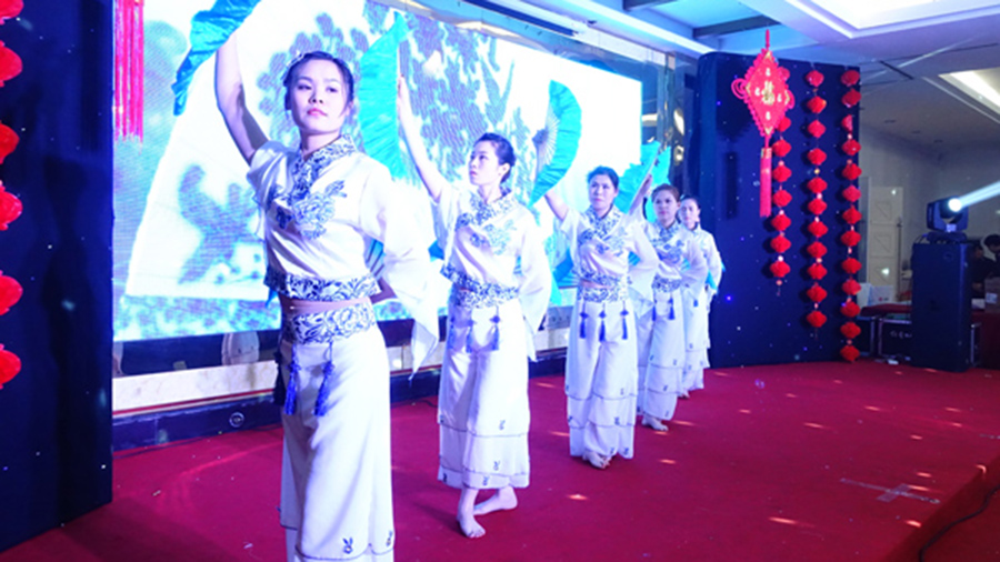 聯(lián)歡會由幸福、丁曄主持。其間穿插了舞蹈、武術、器樂等表演,整臺聯(lián)歡會的節(jié)目都是由員工和員工的子女表演,形式多樣,精彩紛呈,節(jié)目讓晚會高潮迭起,歌聲、掌聲、歡呼聲不時的在晚會場上蕩漾。 由市場部策劃表演的《幻影互動秀》,利用LED背景墻,將舞蹈剪影與背景畫面融合,創(chuàng)造了魔幻般的表演效果;車間員工劉桂林的兒子李承洋演奏的葫蘆絲曲《月光下的鳳尾竹》,帶來絲絲清爽;車間員工黃瑩、吳新會、苗小紅、張馨月、周艷紅表演的舞蹈《青花瓷》,展示了民族舞蹈的特有魅力;員工武海云兒子李昊洋的八極拳表演,動、靜結合,舒展大方。另外,員工王丹丹、葛丹、畢龍、薛婧還為大家?guī)砹恕禘vertime》、《愛情?!?、《情非得已》、《萬水千山總是情》等歌曲。