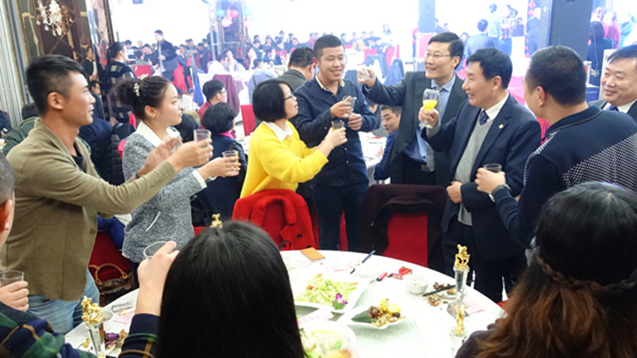 李永安董事長攜全體高管向員工敬酒