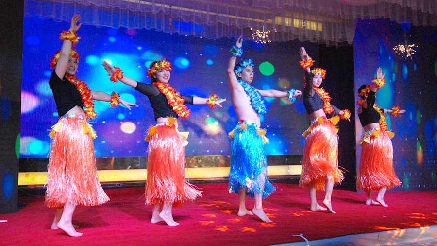 市場(chǎng)部表演的舞蹈《WAKA-WAKA》(草裙舞)熱情搞怪