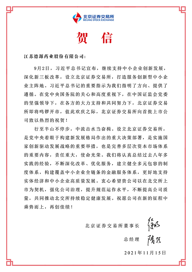 北京證券交易所的設(shè)立是新三板改革的戰(zhàn)略性舉措,將會(huì)進(jìn)一步提升市場流動(dòng)性和增強(qiáng)融資的功能,為上市公司的發(fā)展注入新活力,助力創(chuàng)新型中小企業(yè)更高質(zhì)量發(fā)展。2021年11月15日,北京證券交易所開市,公司作為北京證券交易所首批上市企業(yè),將會(huì)乘著北交所上市的東風(fēng)再出發(fā),進(jìn)一步增強(qiáng)研發(fā)實(shí)力,加大研發(fā)投入,持續(xù)加快新藥上市速度,不斷提升公司治理水平,更好踐行服務(wù)患者的使命,實(shí)現(xiàn)社會(huì)和經(jīng)濟(jì)效益雙提升。