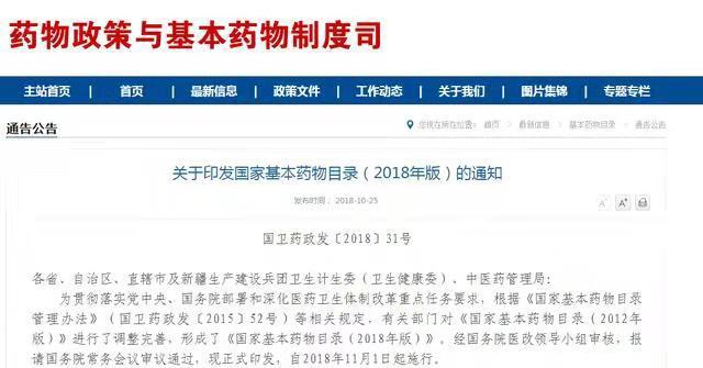 10月25日晚,《國家基本藥物目錄(2018年版)》由國家衛(wèi)生健康委員會正式發(fā)布?;舅幬锲贩N數量由原來的520種增加到685種,其中西藥417種、中成藥268種(含民族藥)。新版基藥目錄于2018年11月1日起施行,《關于完善國家基本藥物制度的意見》(國辦發(fā)〔2018〕88號)提出“原則上各地不再增補,少數民族地區(qū)可增補少量民族藥”,意味著基藥目錄基本成定局,不過基藥目錄將定期進行調整,原則上不超過3年,新上市藥品、通過一致性評價藥品將優(yōu)先納入基藥目錄。值得注意的是,國辦發(fā)〔2018〕88號文在基藥配備使用方面,明確要求“以省為單位明確醫(yī)療機構基本藥物使用的金額比例”、“醫(yī)院用藥首選”、“醫(yī)院使用基藥納入考核”等,諸多政策保駕護航之下,基藥有望實現大放量!