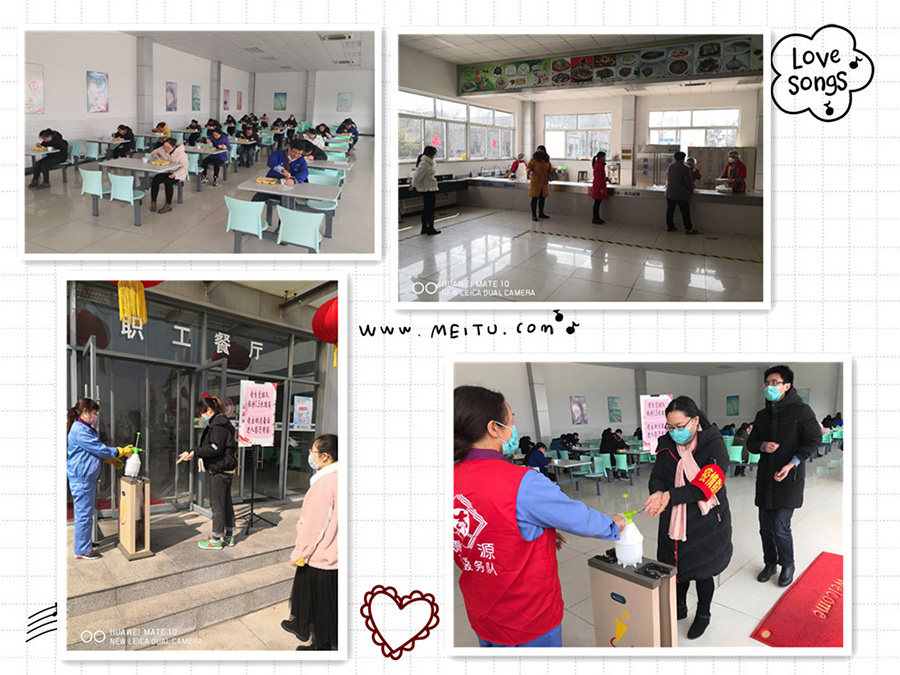 在日常管理上,公司安排專人對通勤車輛提前進行消毒,檢查乘車人員防護措施,測量并登記體溫情況;對所有進入廠區(qū)的人員也逐一檢查防護措施,測量體溫并登記。各部門網(wǎng)格長和網(wǎng)格員每天負責檢查衛(wèi)生輪值人員對工作區(qū)域進行消毒、通風執(zhí)行情況。為了防止員工在用餐時聚集,公司采取錯時用餐,重新調(diào)整了員工用餐時段,要求每位員工排隊領(lǐng)餐的距離保持1.5米以上,并要求一人一桌同向就餐。對外地回連和居家觀察的員工,公司要求各部門網(wǎng)格員每日監(jiān)督員工的身體健康情況,對超過觀察期申請復工人員嚴格審核,及時上報,得到批準后才通知員工復工。為了讓員工了解疫情,掌握防控常識,公司還在廠區(qū)的明顯位置,懸掛宣傳條幅,張貼警示標志,利用電子屏、宣傳欄、小廣播等進行廣泛宣傳,還通過網(wǎng)站、微信等途徑傳遞正確的疫情防控信息,教育職工正確認識疫情,科學防范疫情,做到不信謠、不傳謠,不恐慌。