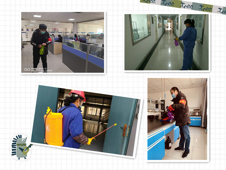 根據(jù)市工信局《關(guān)于進一步做好疫情防控期間企業(yè)復工工作的通知》要求,公司疫情防控領(lǐng)導小組制定了詳細的疫情防控工作方案和復工復產(chǎn)方案,采取網(wǎng)格化管理,明確各級人員的疫情防控工作職責,充分做好復工復產(chǎn)前的各項準備工作。在消毒防護物資緊張的情況下,公司在第一時間想方設法不惜高價采購儲備了大量的口罩、消毒液、洗手液,額溫槍等防控用品,確保員工復工復產(chǎn)后的安全防護。在復工人員把控上,公司對所有員工春節(jié)假期的活動進行統(tǒng)計排查,嚴格按照規(guī)定延緩在外人員以及需要觀察人員復工,并及時告知不能按時復工人員居家期間按正常出勤,要求員工服從當?shù)匾咔榉揽毓芾硪?。公司還要求部分文職崗位居家辦公,減少人員外出。復工復產(chǎn)前夕,公司組織人員對廠區(qū)內(nèi)所有辦公室、車間、倉庫、餐廳等封閉空間、通勤車,以及垃圾存放點等重點部位進行了全面消毒,對復工后人員的各項防控秩序進行了安排,張貼了疫情防控的宣傳標語標識。