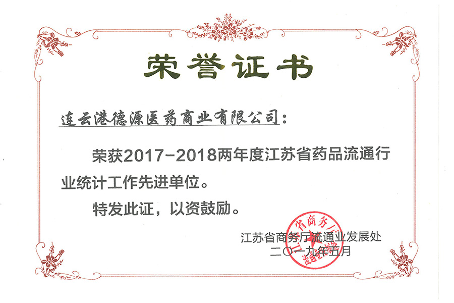 近日,江蘇省商務(wù)廳在南京召開2019年江蘇省藥品流通行業(yè)統(tǒng)計(jì)工作培訓(xùn)會(huì)議,總結(jié)了2017-2018年全省藥品流通行業(yè)統(tǒng)計(jì)工作,部署2019年行業(yè)管理工作安排。會(huì)上還對(duì)2017-2018年統(tǒng)計(jì)工作開展較好的單位和個(gè)人進(jìn)行表彰。連云港德源醫(yī)藥商業(yè)有限公司榮獲“2017-2018兩年度江蘇省藥品流通行業(yè)統(tǒng)計(jì)工作先進(jìn)單位”;業(yè)務(wù)部秦向楠被評(píng)為先進(jìn)個(gè)人。