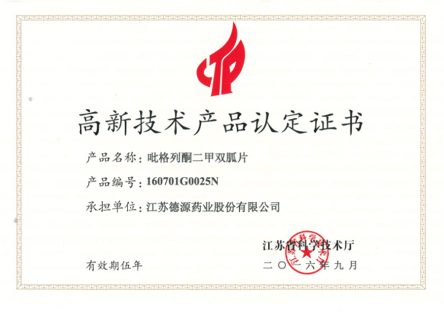 日前,由江蘇德源藥業(yè)股份有限公司首研并首批上市的“復(fù)瑞彤?(鹽酸吡格列酮二甲雙胍片)”成功通過(guò)江蘇省高新技術(shù)產(chǎn)品認(rèn)證,獲得高新技術(shù)產(chǎn)品認(rèn)證證書(shū)。