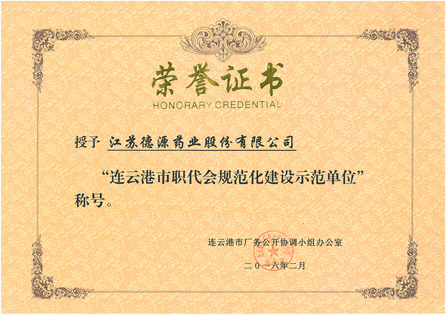 近日,市廠務(wù)公開協(xié)調(diào)小組辦公室表彰了“連云港市職代會(huì)規(guī)范化建設(shè)示范單位”,我公司獲得該稱號(hào)。