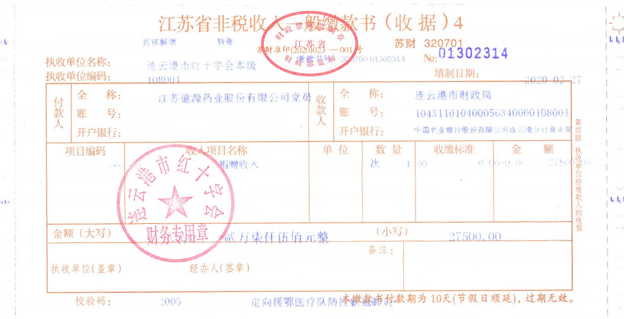 為了表達(dá)對(duì)戰(zhàn)斗在最前線的醫(yī)務(wù)工作者的崇高敬意,體現(xiàn)德源人的責(zé)任與擔(dān)當(dāng),公司已先后開(kāi)展了二次捐款活動(dòng),并通過(guò)市紅十字會(huì)定向援助我市疫情防控工作。首先是公司定向?yàn)檫B云港新冠病毒肺炎定點(diǎn)醫(yī)療單位捐款40萬(wàn)元;繼而,公司黨委又倡議全體員工為連云港援鄂醫(yī)療隊(duì)捐款10萬(wàn)余元,其中黨員捐款2萬(wàn)余元。昨日,公司黨委響應(yīng)黨中央對(duì)廣大黨員的號(hào)召,再次組織黨員捐款27500元,并通過(guò)市紅十字會(huì)定向援助連云港援鄂醫(yī)療隊(duì)。